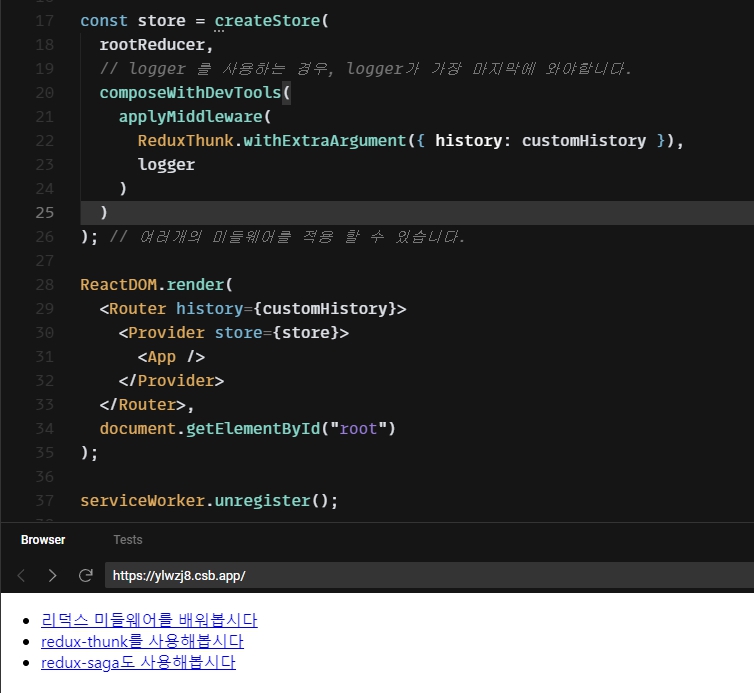 "body": "나중엔 redux-saga를 사용해서 비동기 작업을 처리하는 방법도 배워볼 거예요."