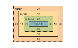 모든 콘텐츠는 각자의 영역을 가지며 일반적으로 하나의 콘텐츠로 묶이는 요소가 하나의 박스가 된다. 기본적인 박스는 항상 직사각형이며 너비와 높이를 가진다.
