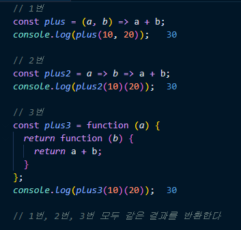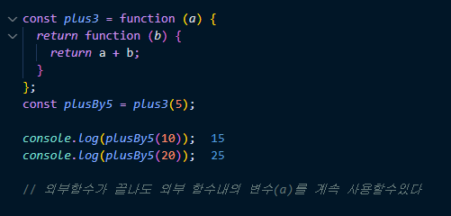 => 즉, plus2의 리턴 값은 함수 형태이다.