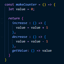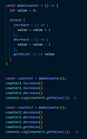 외부 스코프는 내부 스코프로 접근할 수 없기 때문에 value는 직접 수정은 안된다. 하지만 리턴하는 객체가 제공하는 메서드를 통해 value를 간접적으로 조작할수 있다.