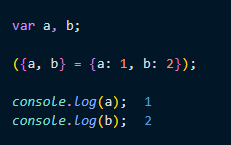 위의 형태는 var ({a, b} = {a: 1, b: 2}); 와 같다.