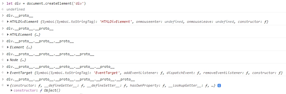document.createElement('div')로 생성된 div 엘리먼트의 부모는 클래스 HTMLDivElement이다.