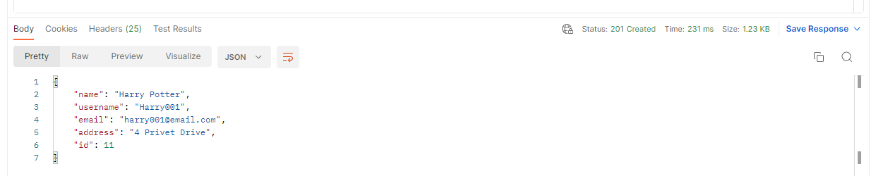 요청을 보내고 상태코드 201 Created가 나타나면 원하는 리소스가 서버에 잘 생성된 것이다.