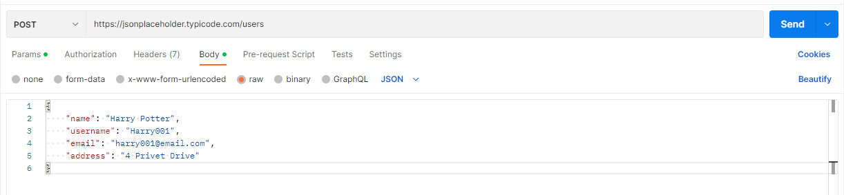 body : {username : "harry", ...}