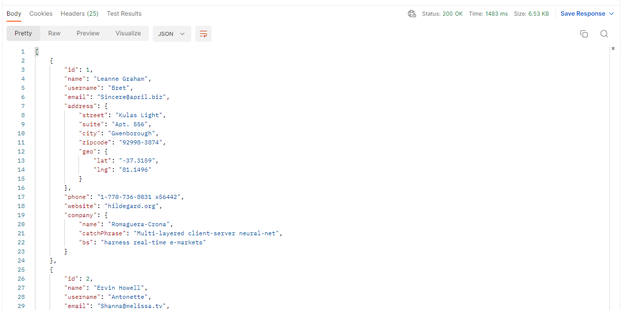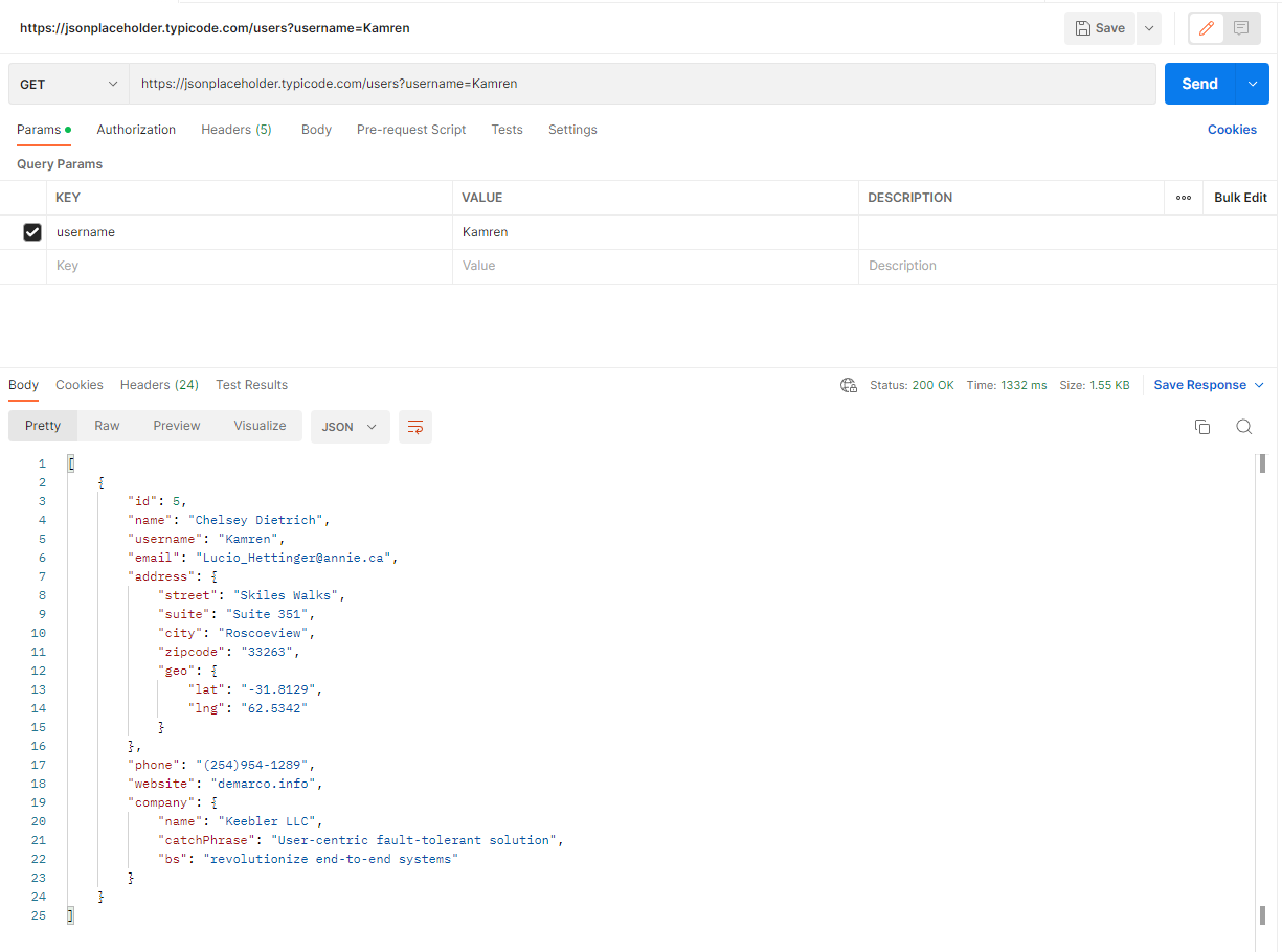 이번에는 username이 Kamren인 유저의 정보만 가져와보겠다.