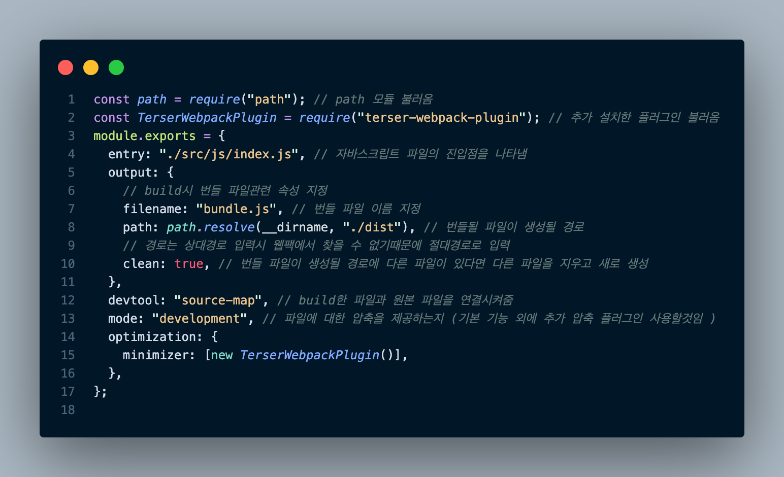 npm i -D terser-webpack-plugin ๋ช ๋ น์ด๋ฅผ ํตํด ์์ถ์ฉ ์ถ๊ฐ ํ๋ฌ๊ทธ์ธ ์ค์น