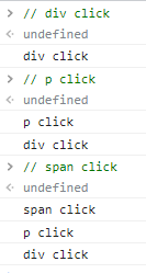 이러한 코드가 있다고 가정했을때, div와 p와 span을 각각 클릭했을때의 결과는 어떨까?