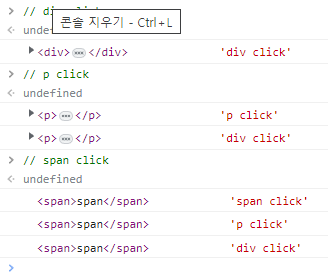 - span 클릭 => 콘솔에 span click 출력