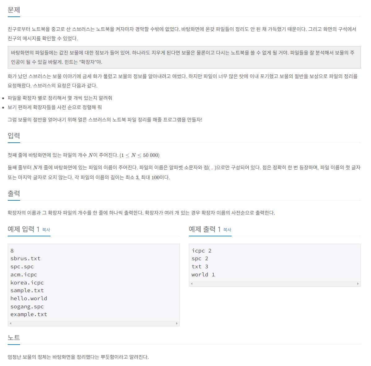 if extend in dic: # 딕셔너리에 확장자가 있다면 개수를 추가