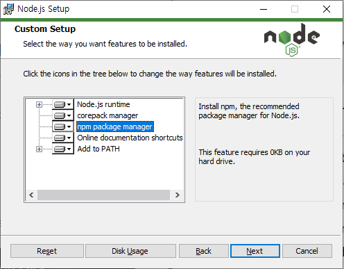 ❗ npm package manager가 포함되었는지 확인