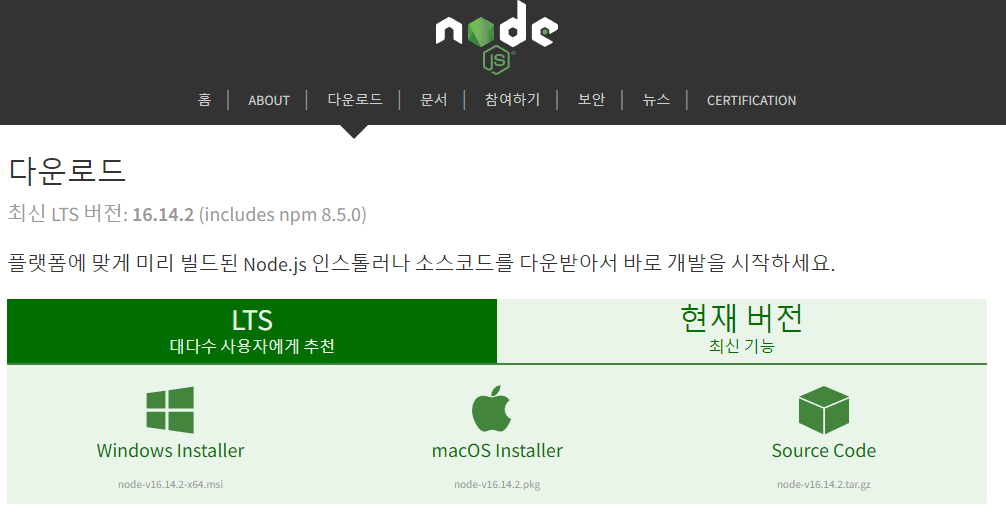 - node.js 설치