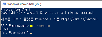 설치 후 npm -version을 입력해 확인