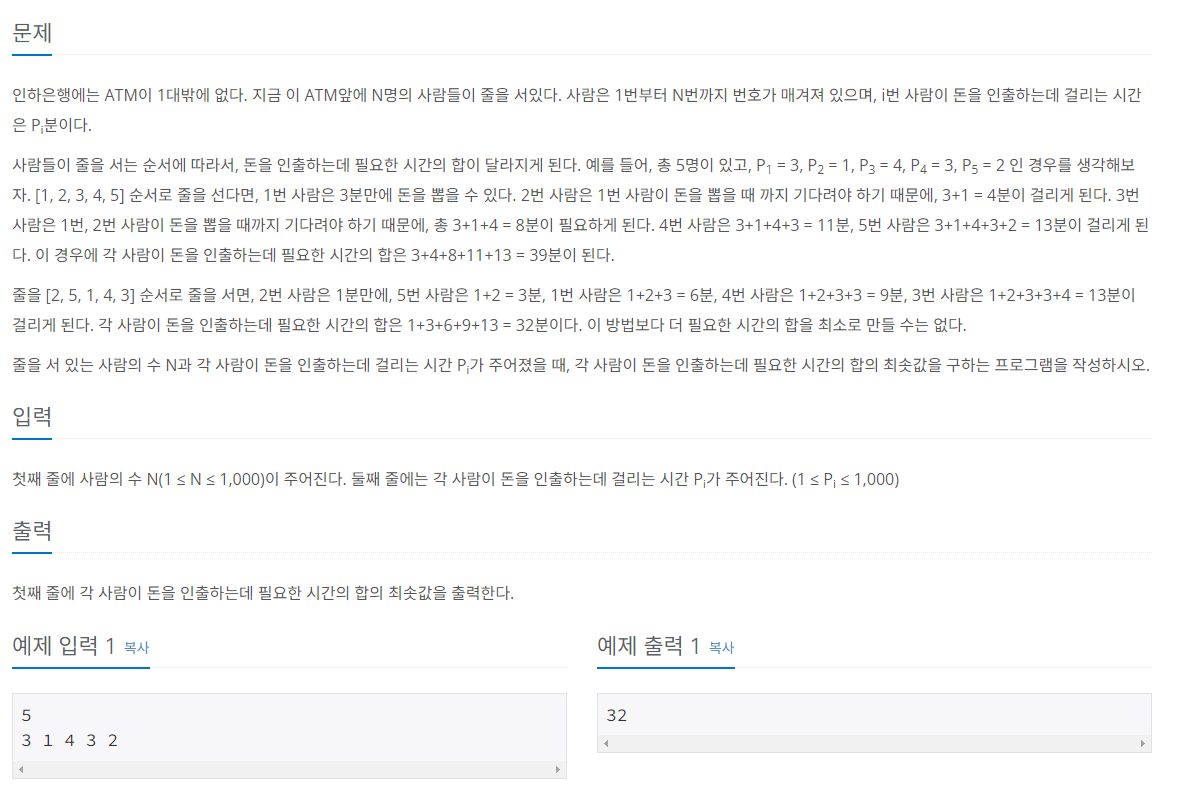 https://www.acmicpc.net/problem/11399