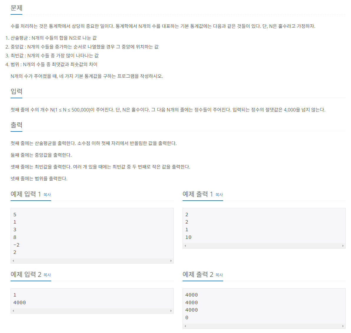 2108번: 통계학
